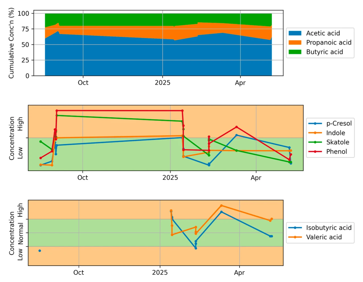 Your S’Wipe report includes a detailed analysis of your SCFA* levels, comparing them to typical levels found in other people. Here’s a breakdown of what each SCFA indicates: